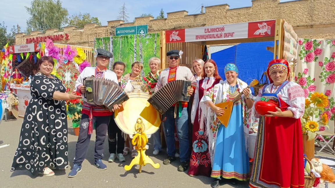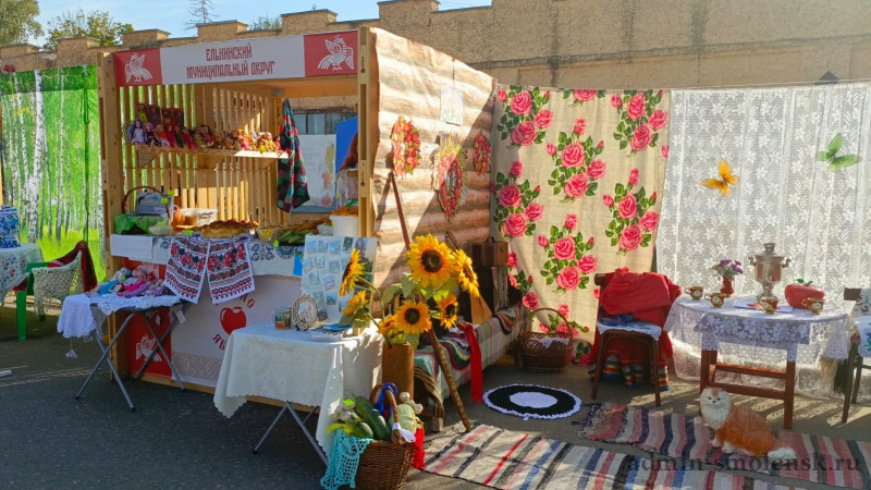 В праздновании принял участие и наш Ельнинский муниципальный округ. Все муниципальные округа области представляли яркие красочные подворья и фотозоны. Наша фотозона была оформлена в стиле русской избы, в которой с удовольствием фотографировались как местные жители, так и гости праздника. Так же на нашем подворье можно было полакомиться свежей, вкусной выпечкой, которую испекли работники сельских Домов культуры нашего округа. Народный коллектив фольклорный ансамбль «Реченька» принял участие в фестивале, который так же проходил в этот день на центральной площади посёлка.
